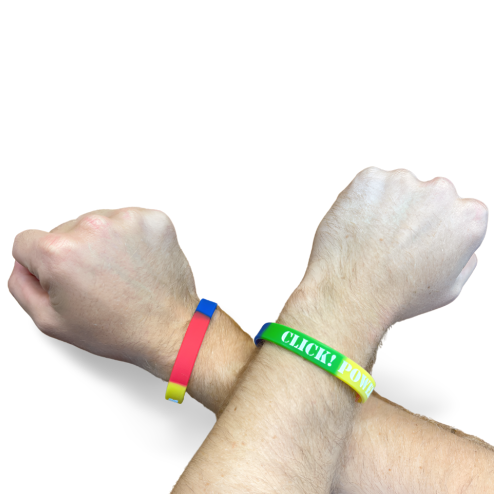 The Click! Power Wristbands are a great way to constantly reinforce the Click! Colours message that we are ALL different and behave according to our Personality and the situations we are placed in.